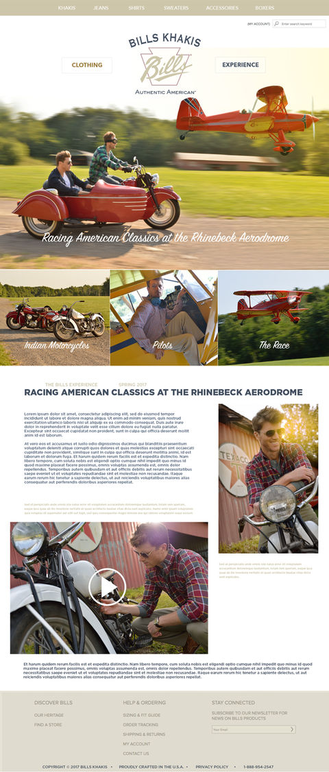 Photography: Direct aspirational presentation of the Bills Khakis brand that leaned on it's American heritage.
